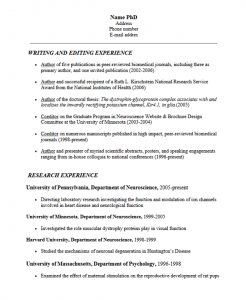 - Three-page format that emphasizes research experiences, and begins with a detailed profile statement